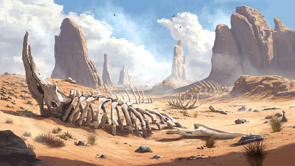 A ruined amphitheater with a large shattered statue fallen atop the stands, and a large sinkhole near the center. A blue dragon digs its lair under desert ruins and the hole in the ground is the main clue and entrance to this creatures domain. The dragon could potentially be somewhere in the stands, either perched atop the remnants of the statue staring down, or breathing lightning down.
